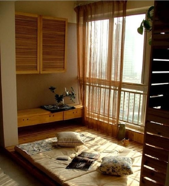 封閉后的多功能陽臺(tái)設(shè)計(jì)成日式榻榻米,家里有客人留宿時(shí),歐斯寶多功能陽臺(tái)瞬間成為一間獨(dú)立的客房,簡直就是讓家里多出了一間臥室。