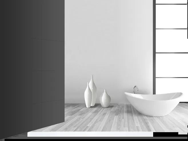 淺色墻板、白色鋁扣板吊頂、淺色配飾、淺色瓷磚地板等