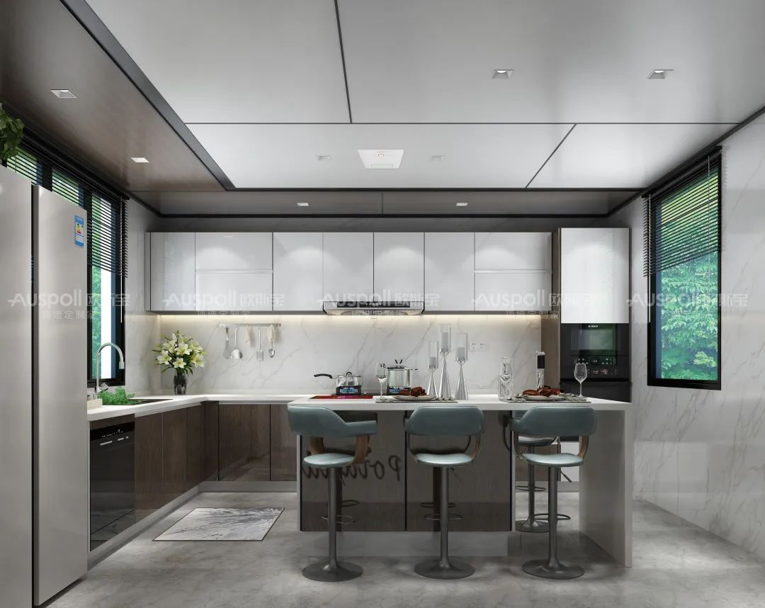 廚房,使用明火、濕氣大、油煙重,歐斯寶蜂窩定制大板系列,防潮、防火、防霉、抗油污性等出色性能,款式花色繁多,隨意搭配,百搭不同家居風(fēng)格。美觀的同時(shí)還遮擋上方排水管道。