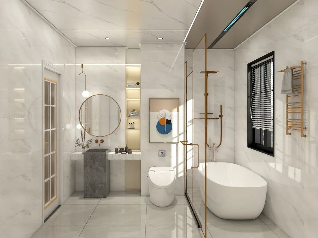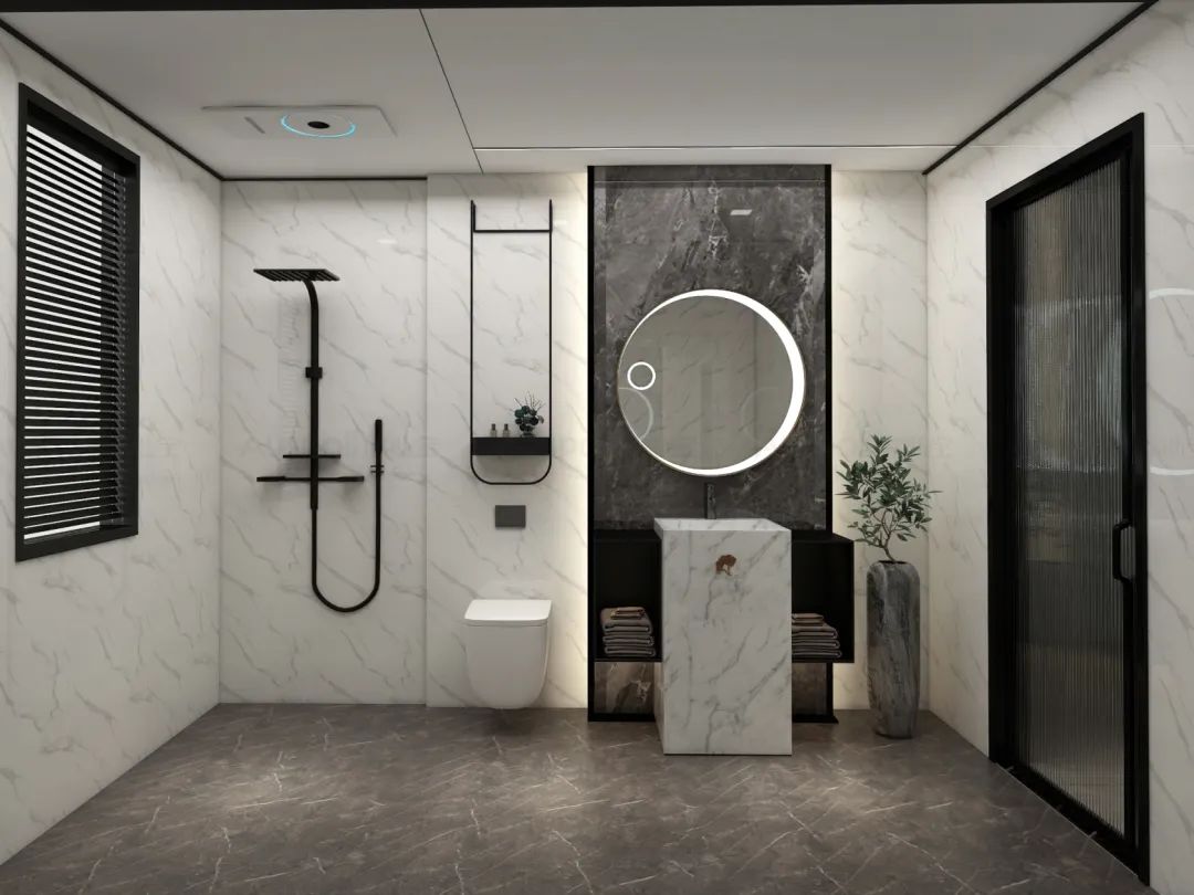 衛(wèi)生間設(shè)計(jì)建議以簡(jiǎn)單大方的現(xiàn)代簡(jiǎn)約風(fēng)格為主,注重功能性和空間的利用,將空間完美呈現(xiàn)的同時(shí)融入功能,簡(jiǎn)而不減。大面積的黑白灰,簡(jiǎn)約耐看,用20年也不會(huì)過時(shí)。