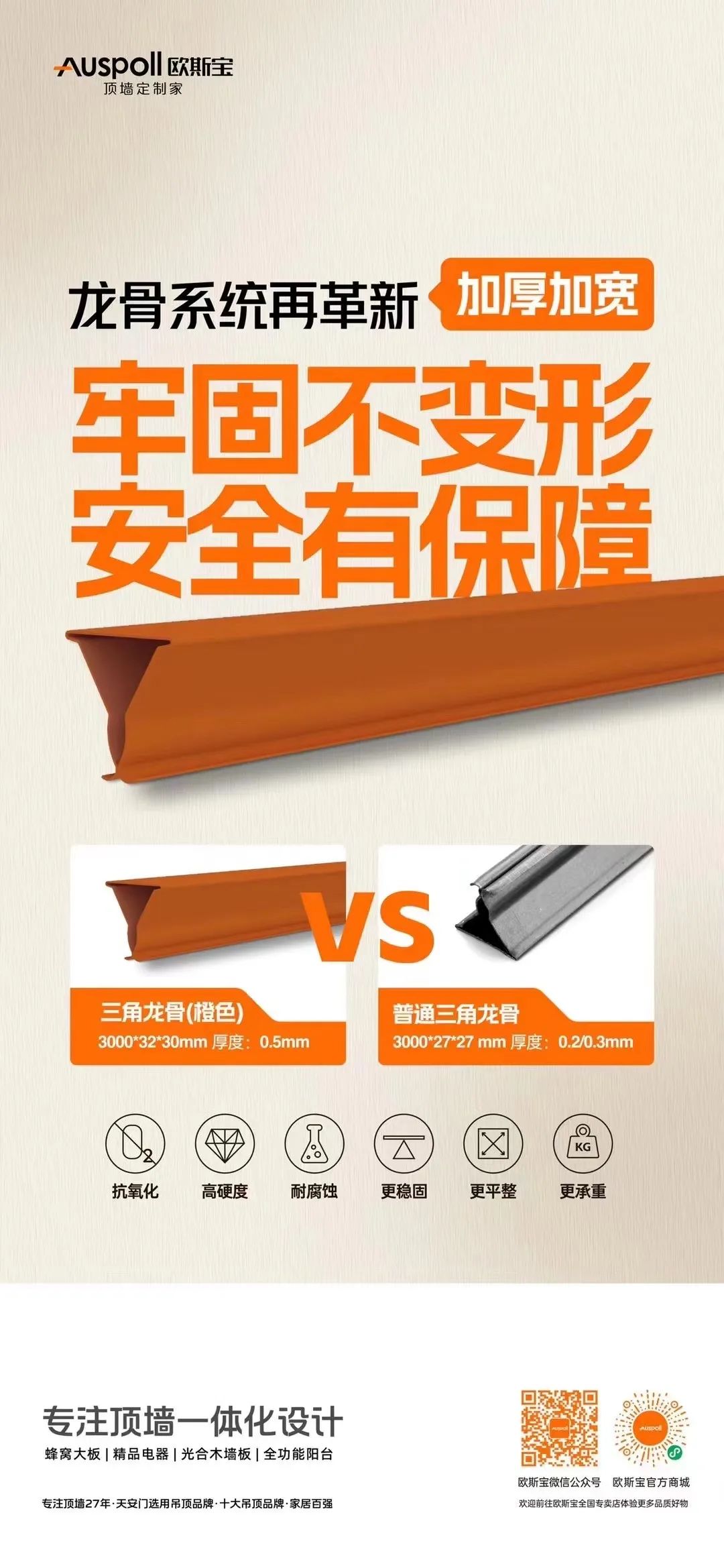 蜂窩大板的窩心邊長(zhǎng)規(guī)格從6 X 6mm,升級(jí)為4 x 4mm,在同等面積情況下,蜂窩芯骨架更密,同時(shí)升級(jí)配套龍骨及配件,產(chǎn)品性能優(yōu)異,支撐力、穩(wěn)定性更強(qiáng),增強(qiáng)了板材的平整度和承重力,差異化更明顯。