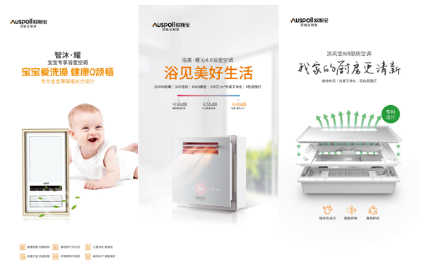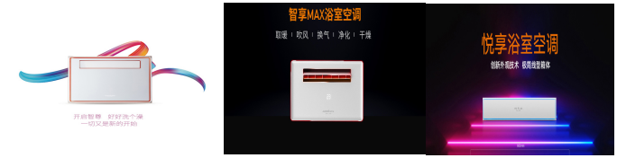 中端系列(精準(zhǔn)任務(wù)型,有專門的消費(fèi)群體):智沐·耀寶寶專享浴室空調(diào)/浴美·暖沁浴室暖空調(diào)/涼風(fēng)寶系列廚房空調(diào)