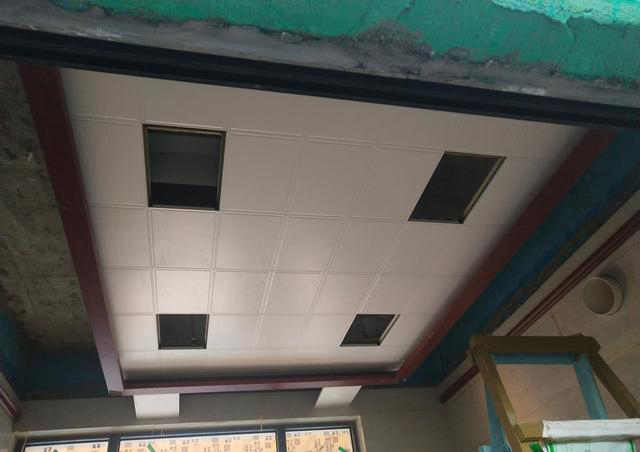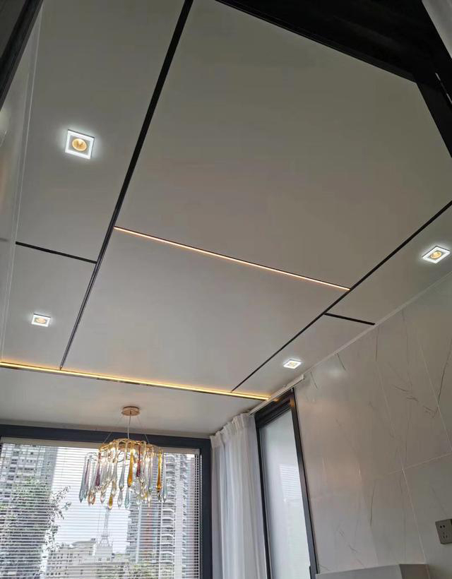 狀況二,不太喜歡拼接縫,傳統(tǒng)式石膏復(fù)合板吊頂搞好之后,刮塑刷完灰之后,表層較為整平,看不見板跟板之間的拼接縫。集成吊頂卻沒法做到,由于集成吊頂是一塊一塊組裝拼接上來的,因此無論板材多大,都是會(huì)有拼接縫,只不過看縫的多少罷了。因此不太喜歡餐廳吊頂有拼接縫的人,集成吊頂也無法代替?zhèn)鹘y(tǒng)式裝修吊頂。