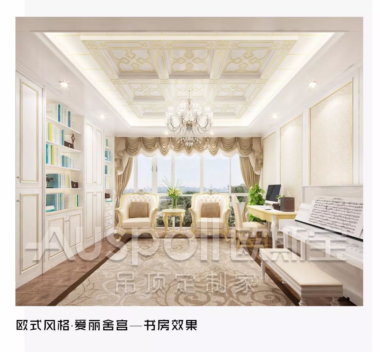 書房,鋼琴,歐式,貴族之家,不可或缺的尊享之位;愛麗舍宮的造型吊頂,支撐起整個歐式風格書房裝飾,讓家居休閑,更享尊雅之范;