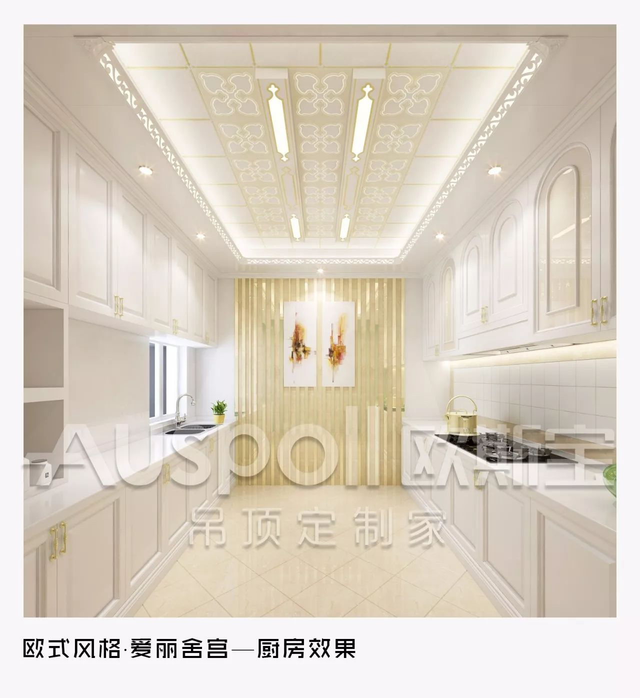愛麗舍宮在廚房也可做二級頂,且的視覺效果富麗明亮,可用150LED規(guī)格做輔助燈源,也可以300規(guī)格LED做主燈源;搭配方式靈活多變;