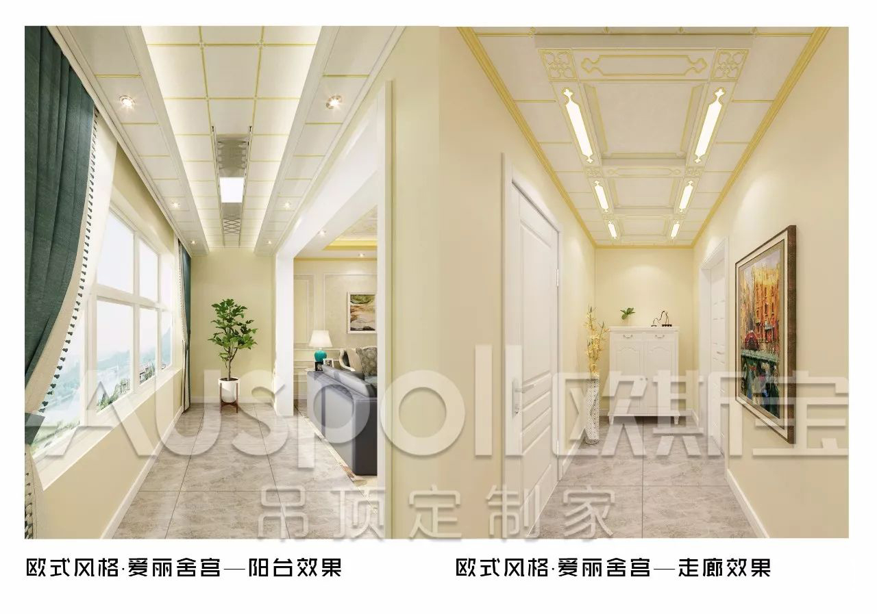 臥室不用太過繁重的裝飾,無邊框裝飾的愛麗舍宮扣板,以歐式花紋造型之美,亮白富雅之顏,空靈空間,配合舒緩色調的軟裝飾品,給予戶主怡然之居;