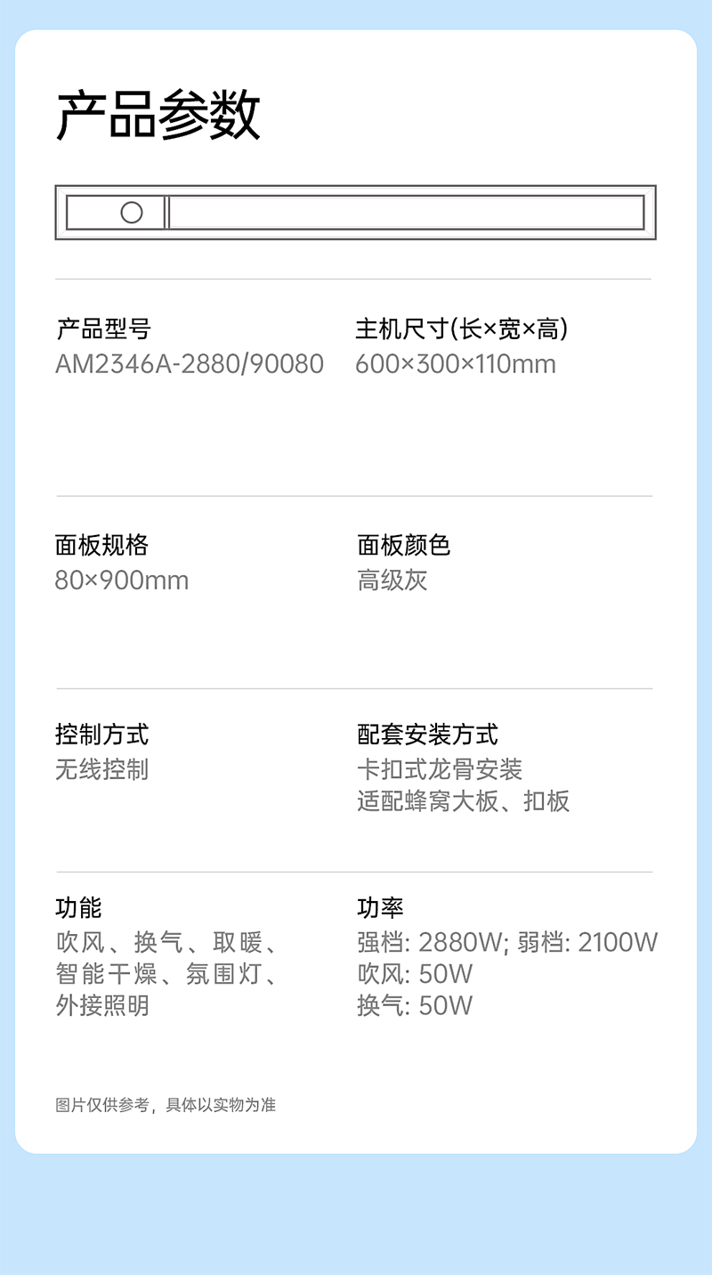 吹風(fēng)、換氣、取暖、智能干燥、氛圍燈、外接照明